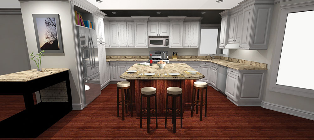 KPS Sons Carpentry LLC offers the latest in virtual 3-D Full Color Cad Designs for all our Kitchen and Bath projects. Many homeowners are often nervous or unsure about how their potential projects will turn out in their home. With our experience and guidance we work closely with all of our customers, one-on-one, combining ideas, budget, functionality and endless possibilities to design the perfect kitchen or bath for their home. Our design center features numerous samples and displays to help our customers choose the right materials, styles and colors for their new project and budget. Our 3-D Full Color Cad drawings, allows our customers to get a true look and feel of what their project will become.
