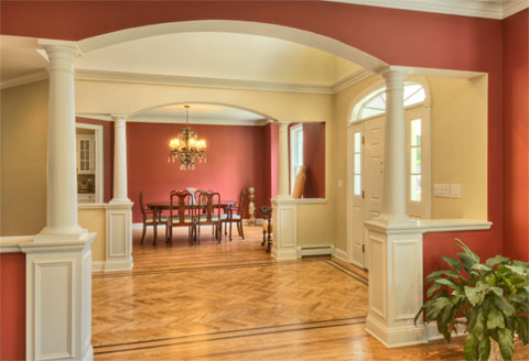 All types of moulding and trim styles and options, including raised paneling, wainscotting, crown moulding and coffered ceilings.