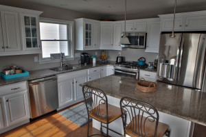 This 4 bedroom, 3 1/2 bath home features plenty of great amenities for the summertime, such as, an elevator, tiled showers, custom kitchen and a beautiful multi-level deck with spiral stairs and ocean views.