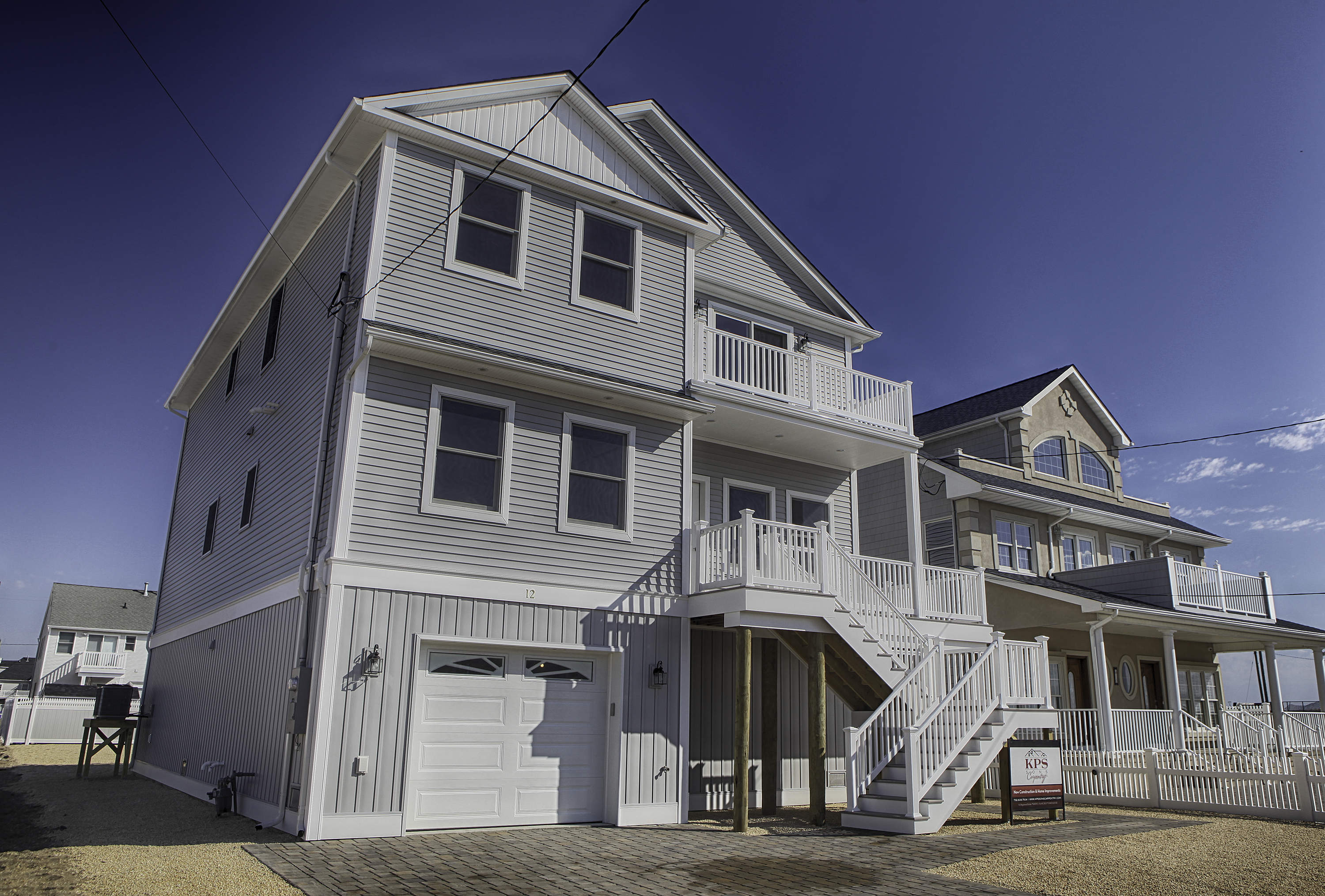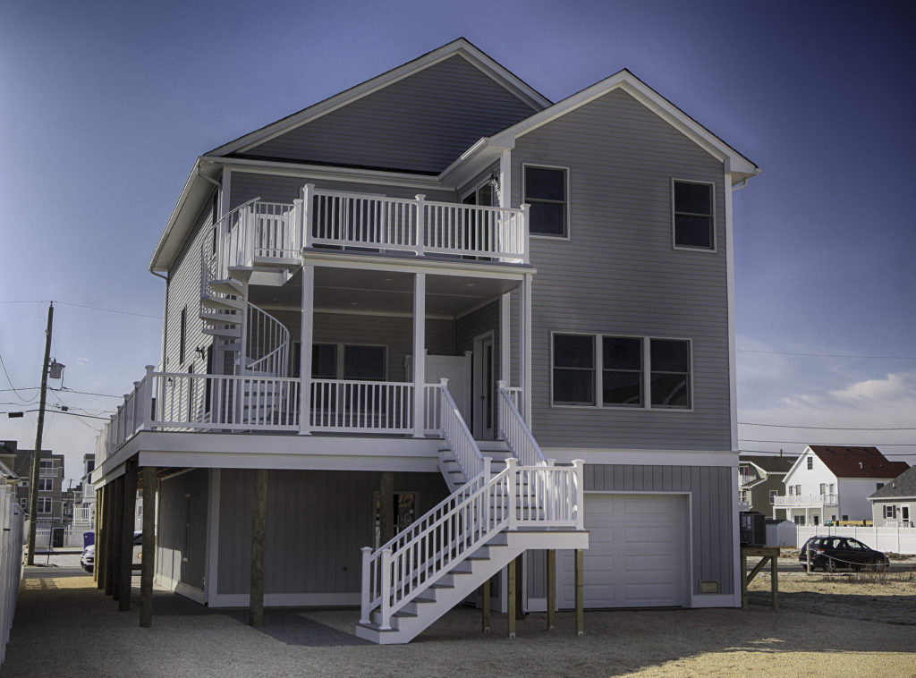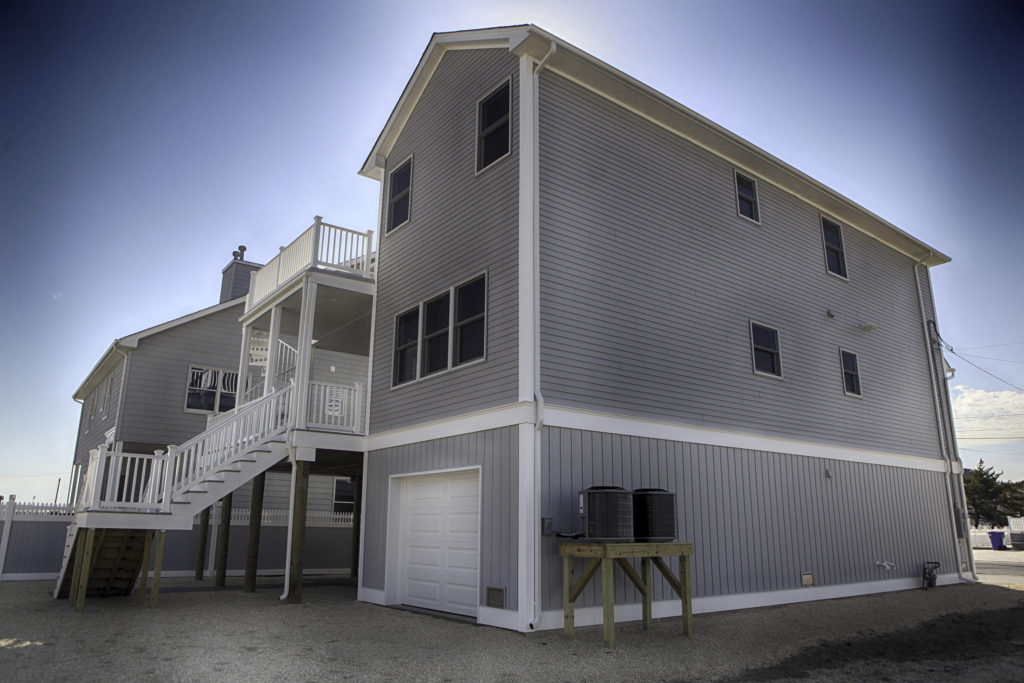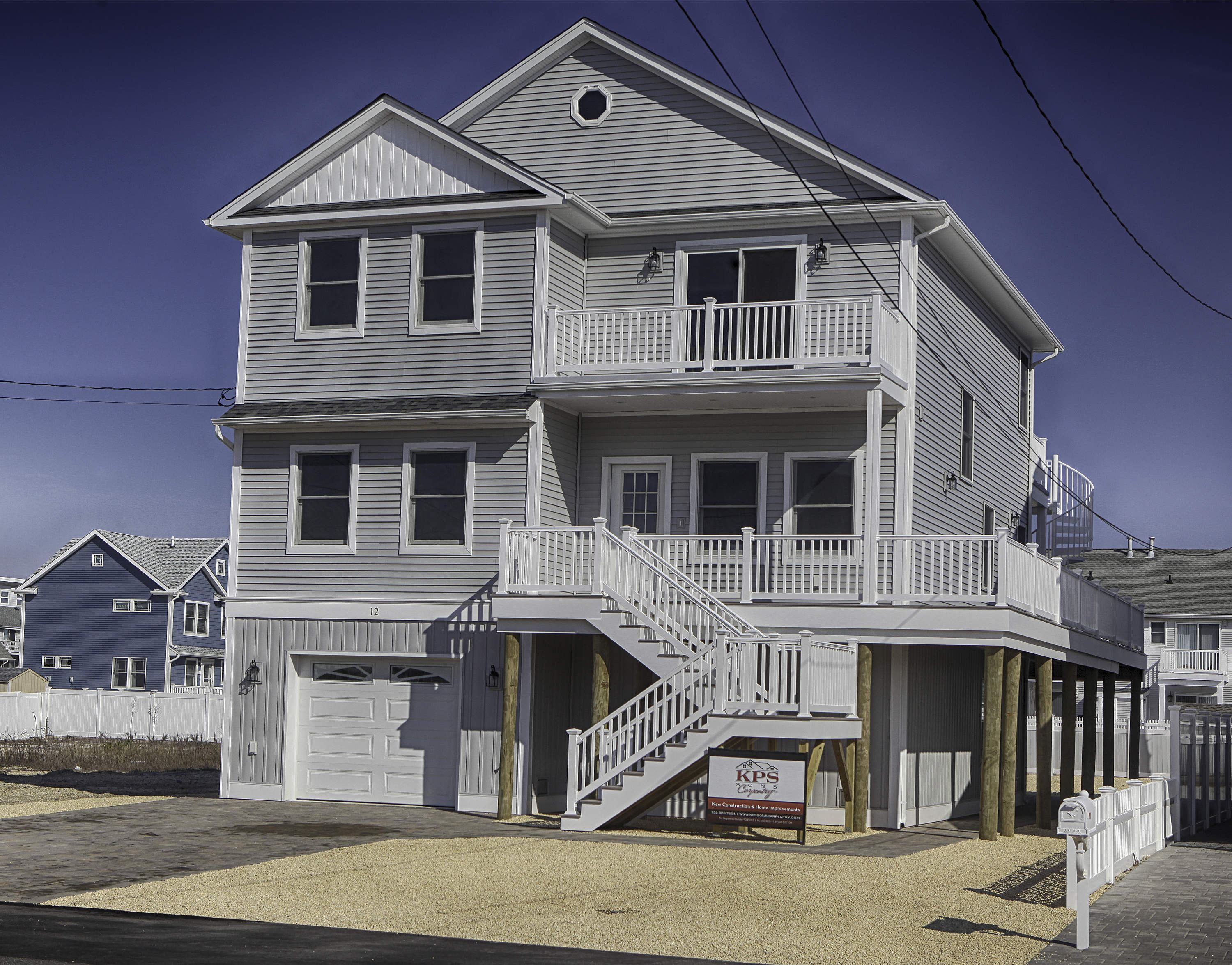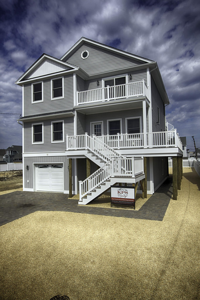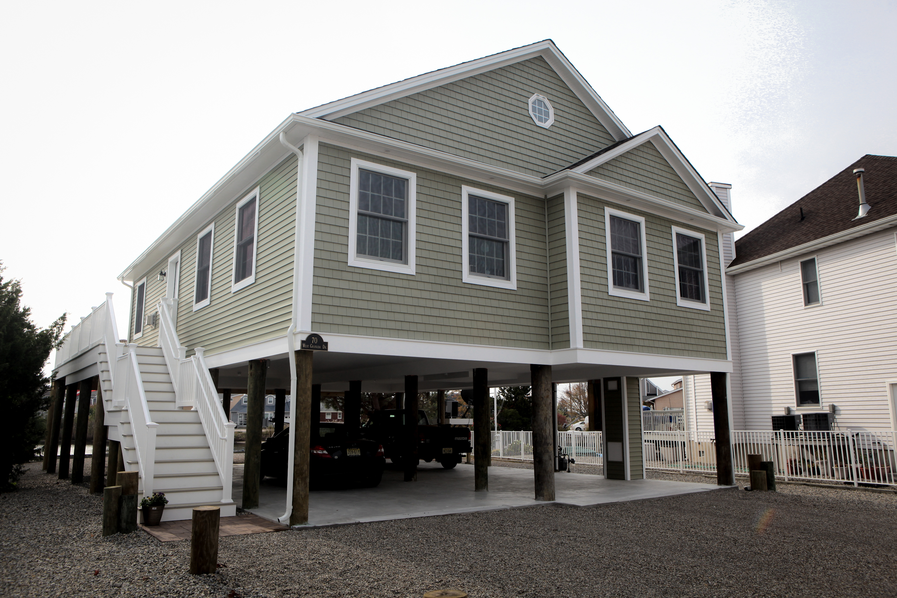 This custom modular home is located within steps from the beach. The house is raised on pilings to conform to the latest flood zone requirements.