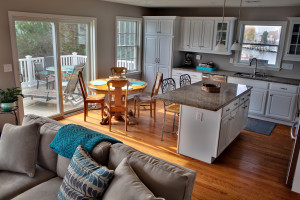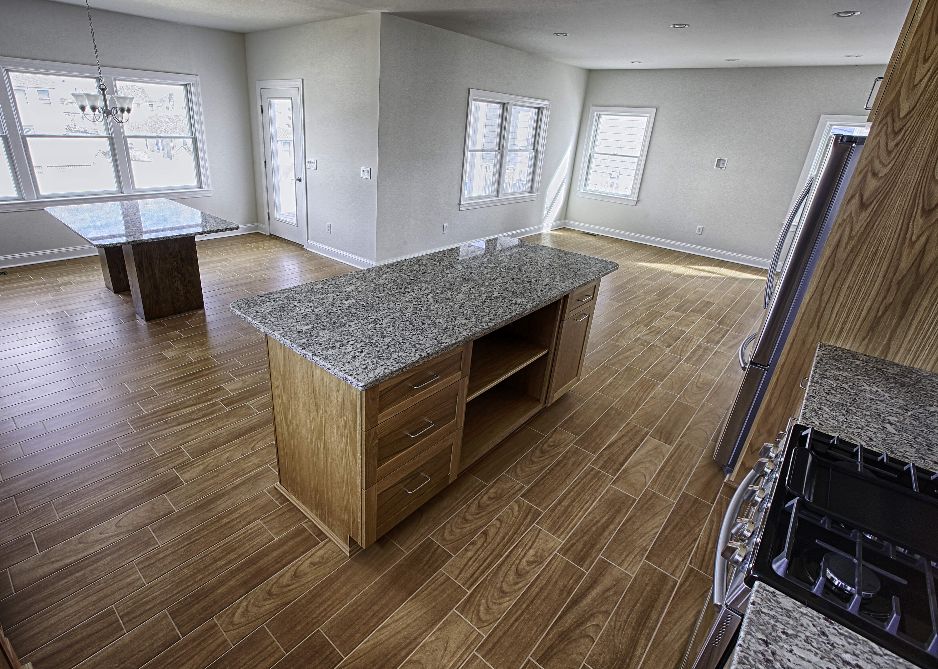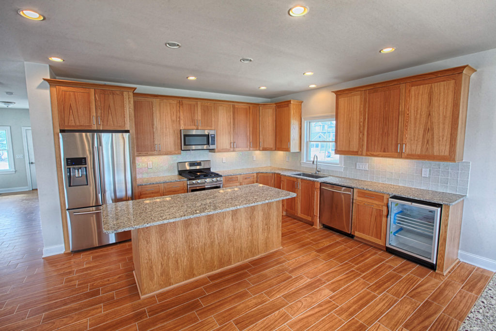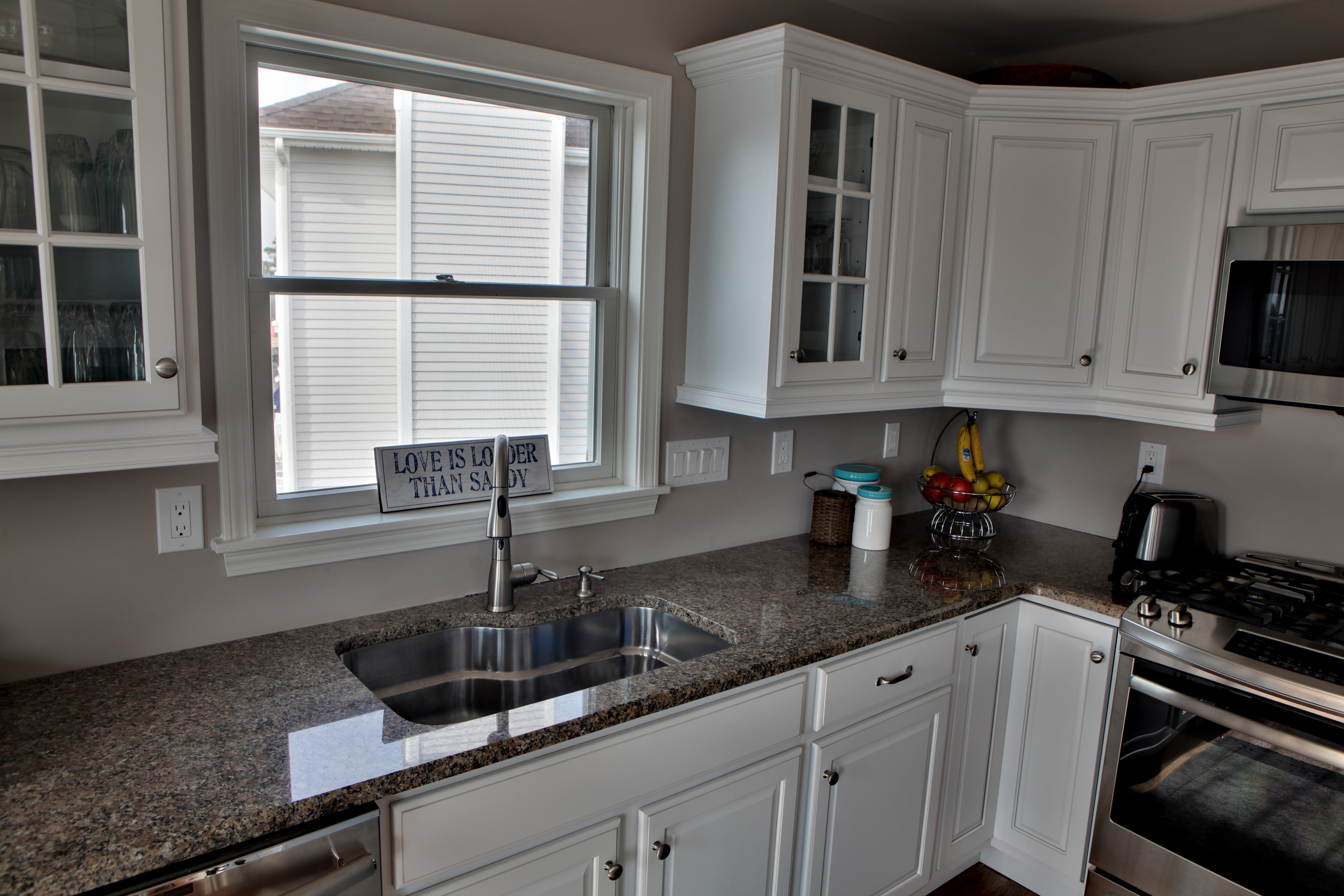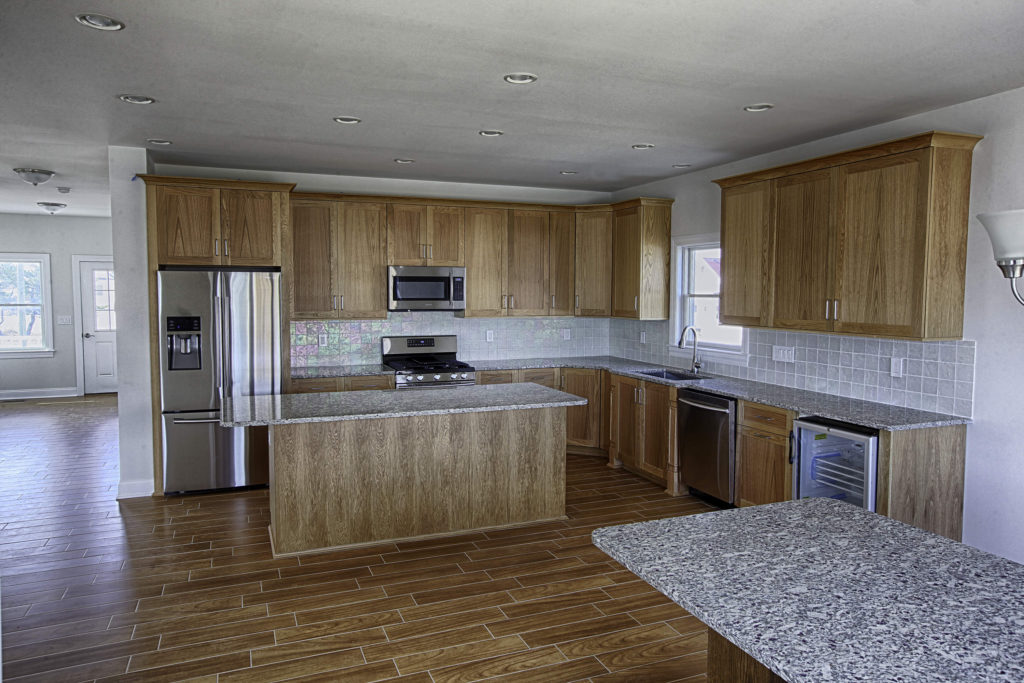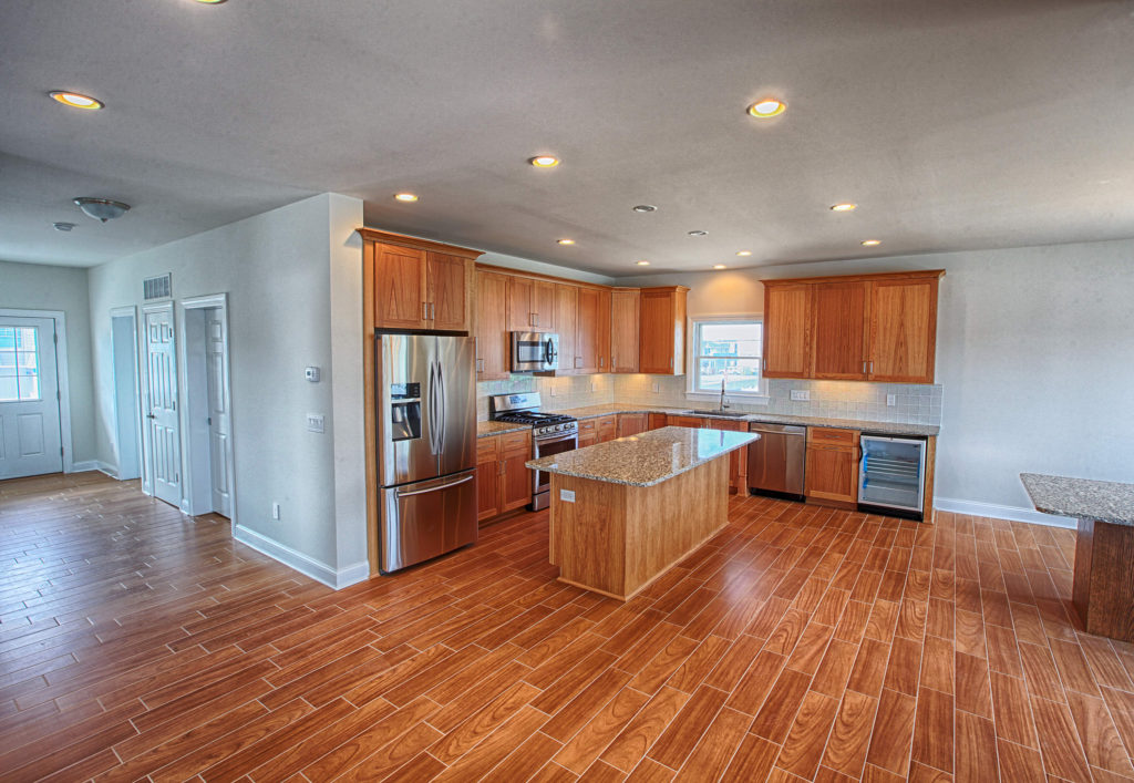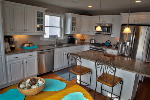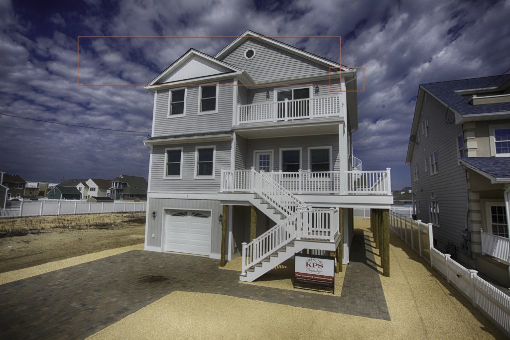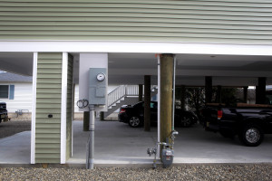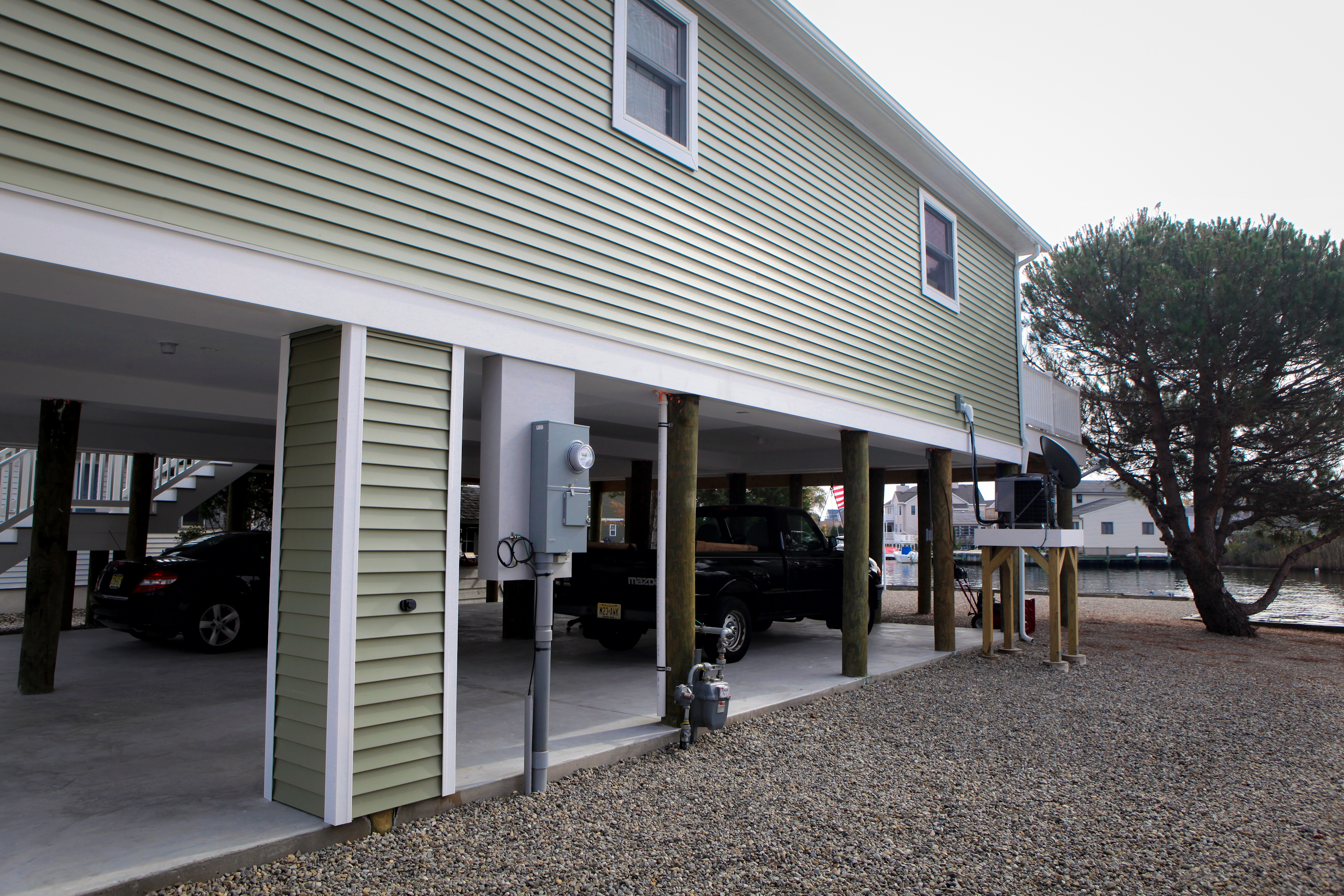 This custom modular home is located within steps from the beach. The house is raised on pilings to conform to the latest flood zone requirements.